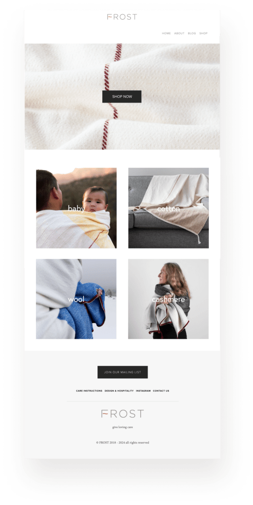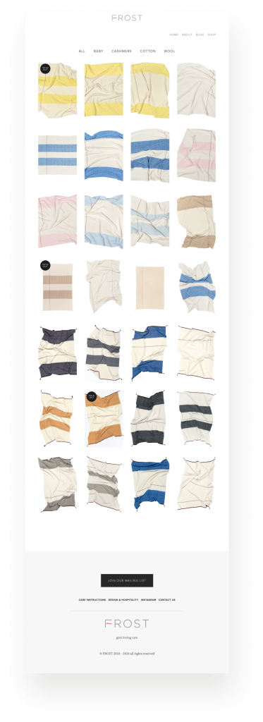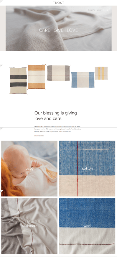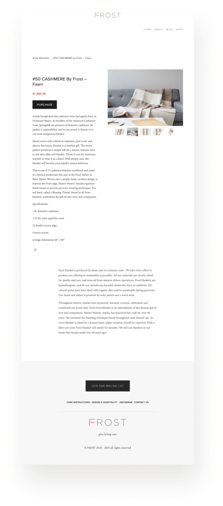 Frost needed a modern ecommerce site to feature their limited run of unique heirloom handwoven blankets.