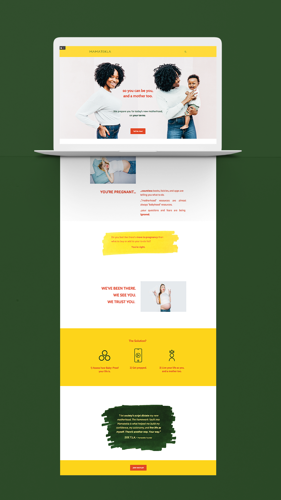 Mamatekla needed a brand identity that resonated with mothers who felt like people who happen to have babies. I art directed a logo, brand guidelines, and voice for Mamatekla that pulled from the wellness products and design aesthetics the audience engaged with in other areas of their lives. The brand was accepted into the 2020 New Hampshire Tech Alliance Incubator.